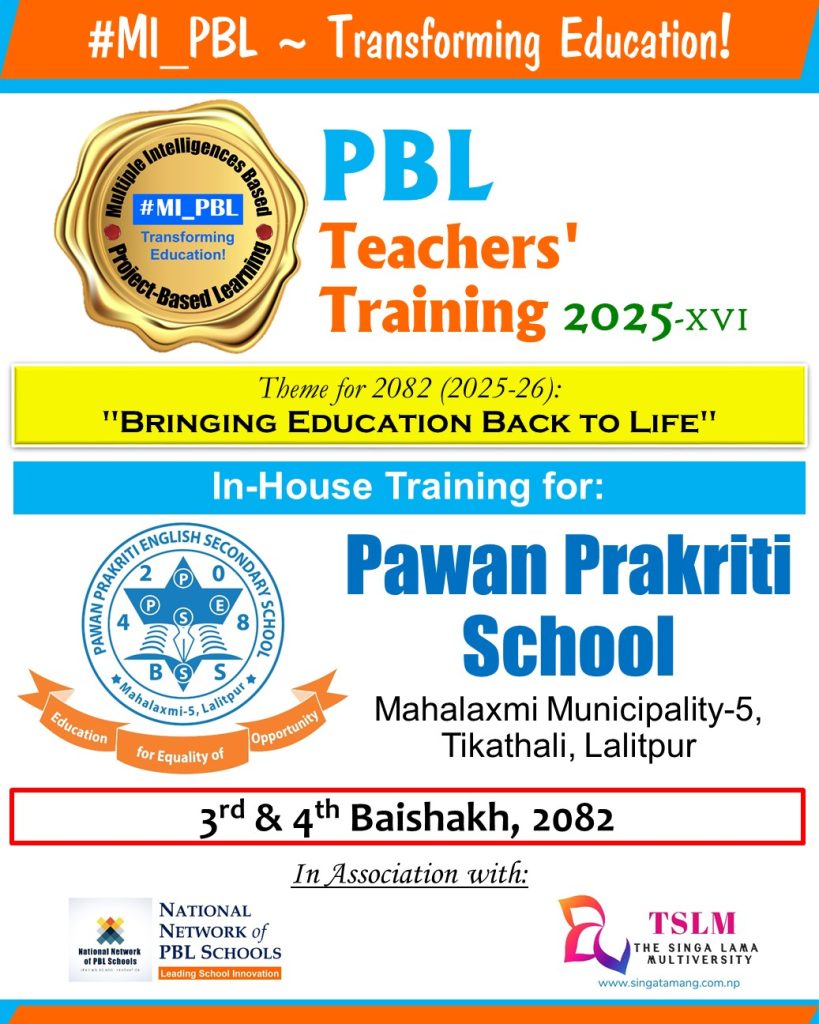 KNOW THE SOURCE: The #MI_PBL, a Synergistic Amalgamation of Theory of Multiple Intelligences, Constructivism, Progressive Education and Project-Based Learning, developed by Mr. Singa Lama in Nepal, largely follows Dr. Howard Gardner‘s Harvard University Project Zero – Project Spectrum Modality of Multiple Intelligences, mingled with John Dewey’s Progressive Education, Jean Piaget’s Constructivism and standardized PBL System developed by Buck Institute for Education (BIE), USA.